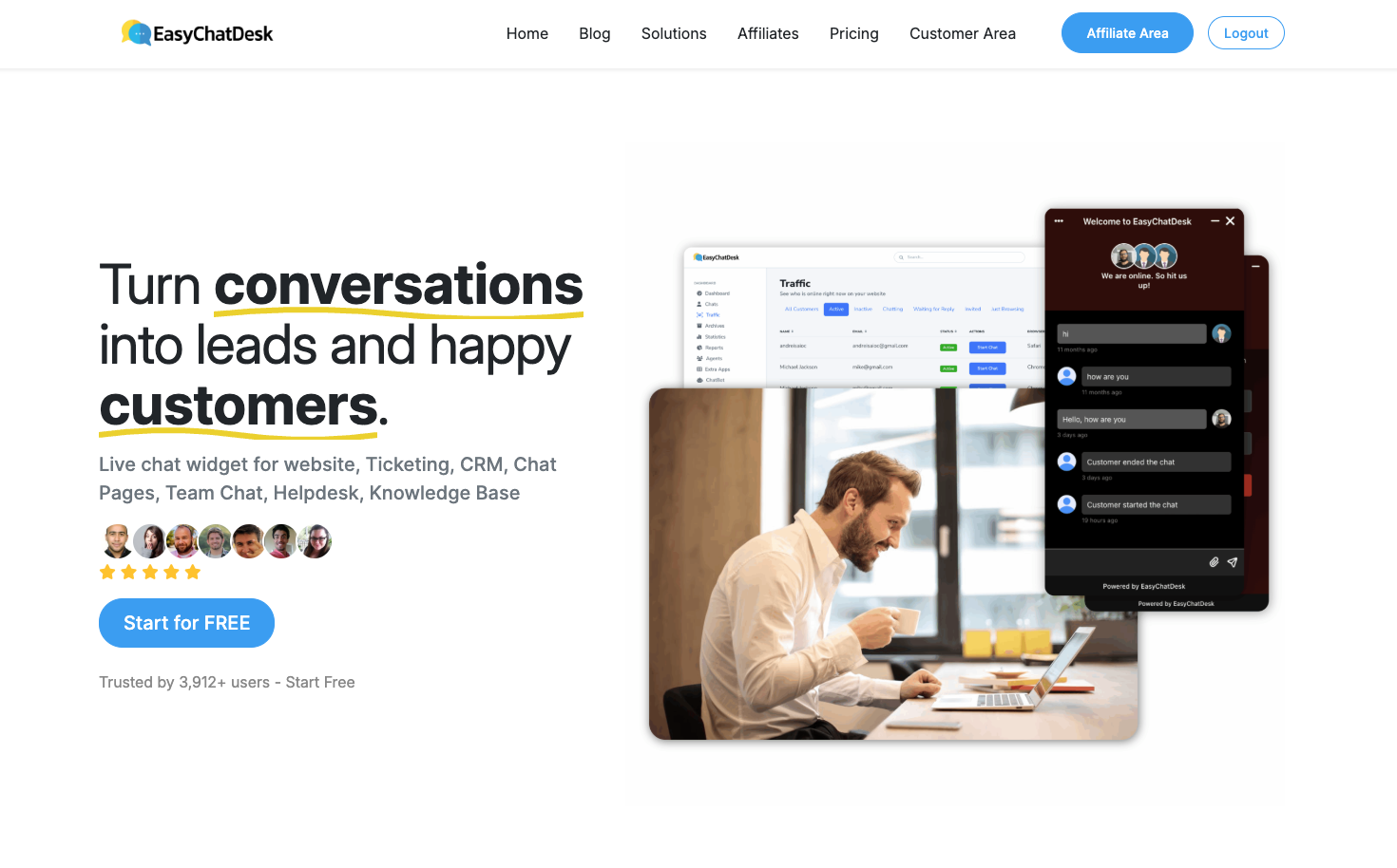 Try EasyChatDesk free: live chat, help desk ticketing, and an AI chatbot in one platform.